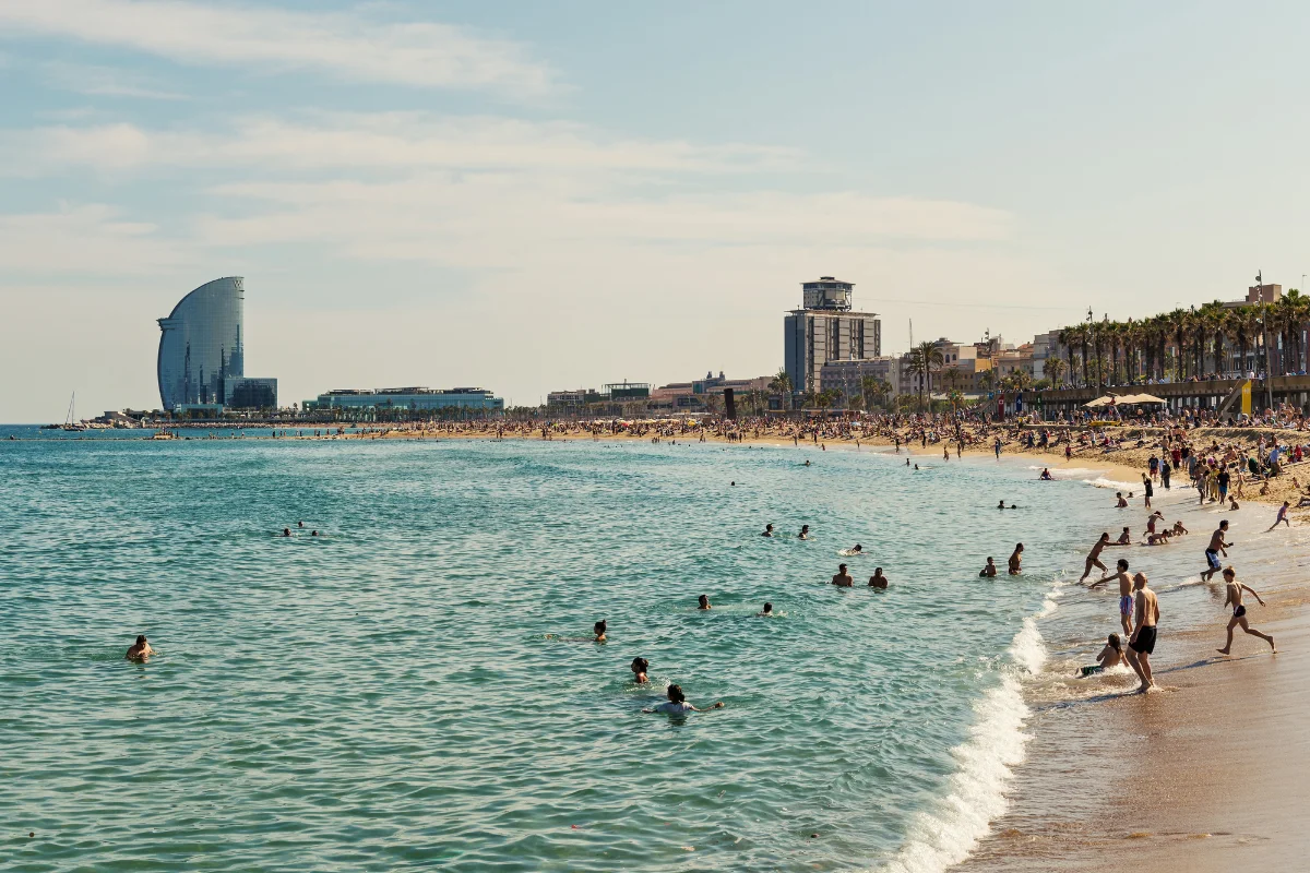 Septiembre mantiene temperaturas de verano (26°C de máxima) y la playa sigue siendo usable. La diferencia respecto a julio y agosto es que el volumen de turistas empieza a bajar. La Mercè (24 de septiembre, fiesta mayor de Barcelona) llena la ciudad de conciertos gratuitos, castellers, correfocs y actividades en la calle durante una semana. La noche del 23 de septiembre el metro funciona sin interrupción.