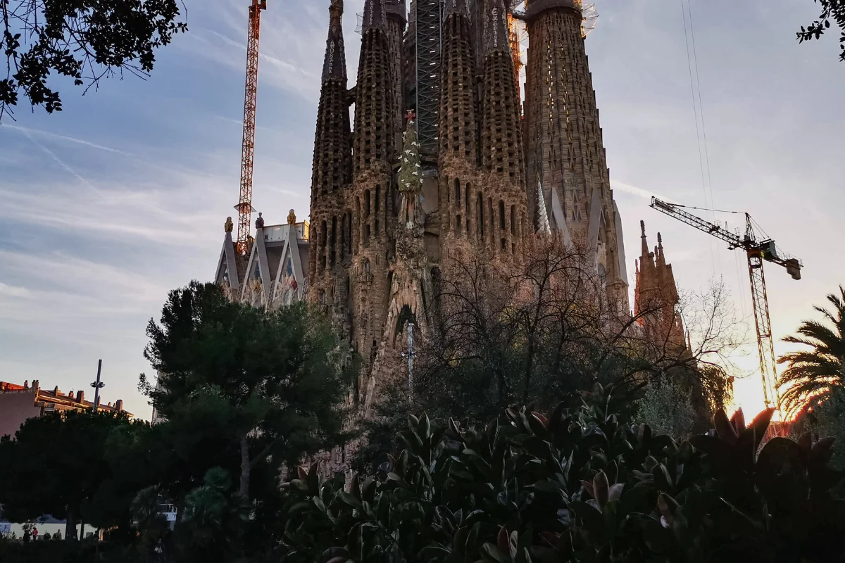 El atardecer sobre la Sagrada Família no funciona igual en todas las épocas del año. La Torre de Jesucristo está orientada con el eje vertical apuntando al cenit — la luz cae sobre la cruz de forma diferente según la posición del sol.